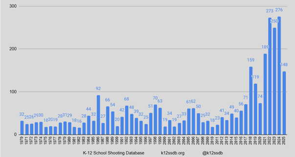 Kaynak: Riedman, David (2025). K-12 School Shooting Database